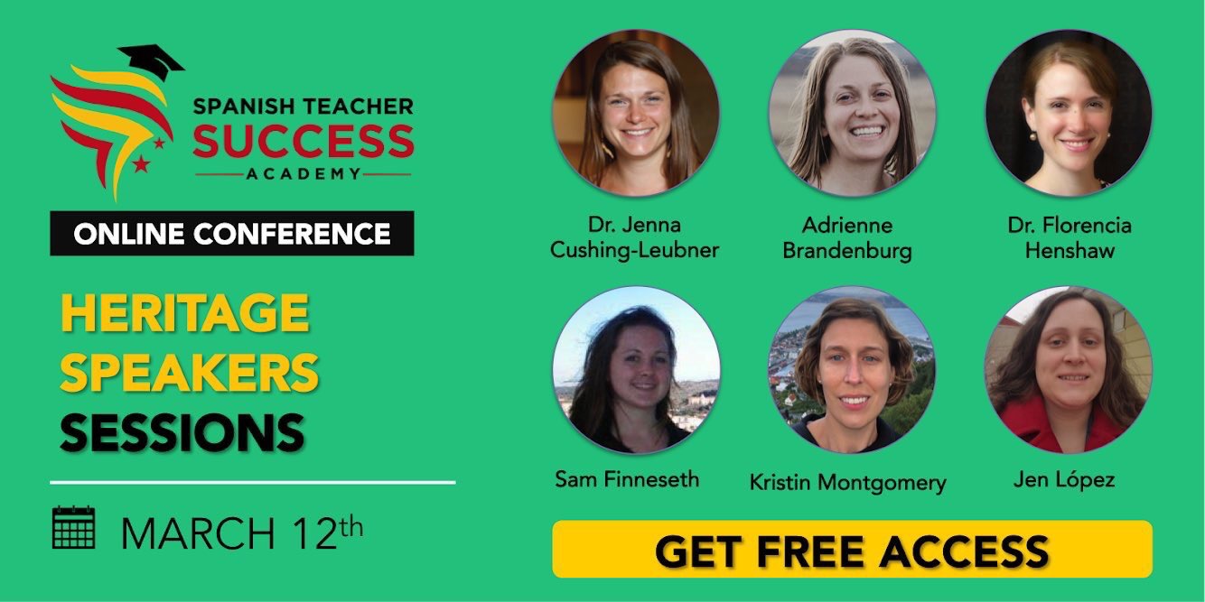 I’ve been strategically trying to listen to all the heritage sessions first, knowing that I wanted to share my takeaways with you all. If you are unfamiliar with the Spanish Teacher Success Academy, a friend of mine named Jared Romey has put together a great lineup of 25 Spanish teachers sharing on a bunch of different topics…and the sessions are free to watch, all the way up until TONIGHT (March 18, 2019) at 11:59 Pacific. You can just head on over to this link, sign up, and then boom! You’ll have access to all the sessions in your email. AND if you start to think, “Man, I’d love to see all these sessions but I don’t have enough time to listen to all this amazingness!!” — then you can upgrade for $67 and get lifetime access to all the sessions, plus a million extras (including a PD certificate). I might add, one of the perks of the All Access Pass is you can watch Q and As with a few presenters, including Sam Finneseth and Michaela McCaughey, who both presented on heritage topics. But again…you only have until tonight!!