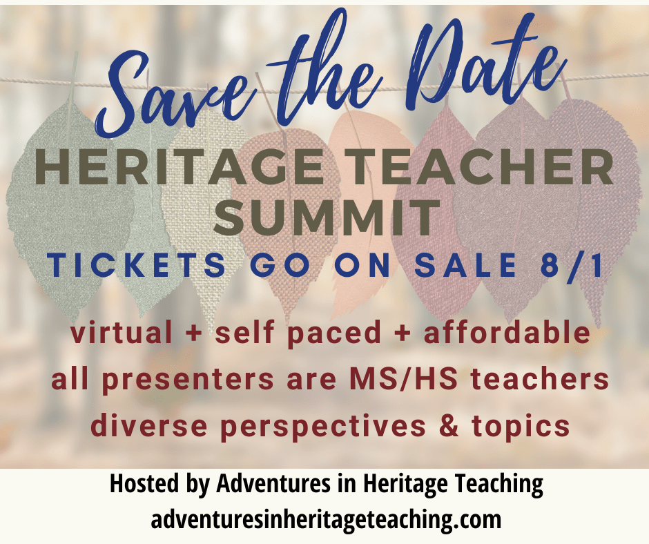 I wanted to take a few minutes and share some takeaways and reflections from our Heritage Teacher Workshop that took place in mid-June. It was such a great experience for me, and it always helps me to do some reflecting in writing, so I hope these reflections are helpful for you, too. Plus, don’t miss our exciting announcement at the end of this blog post!