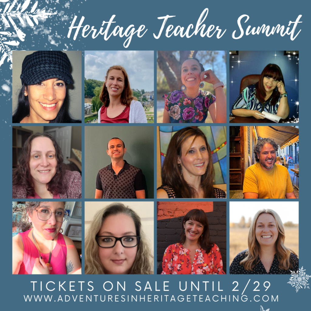 We are excited to announce that we are hosting the FOURTH HERITAGE TEACHER SUMMIT! The goal is to provide some very needed VIRTUAL PD for heritage teachers at an extremely affordable price, and to hear from LOTS of amazing heritage teachers across the country doing some amazing stuff!!